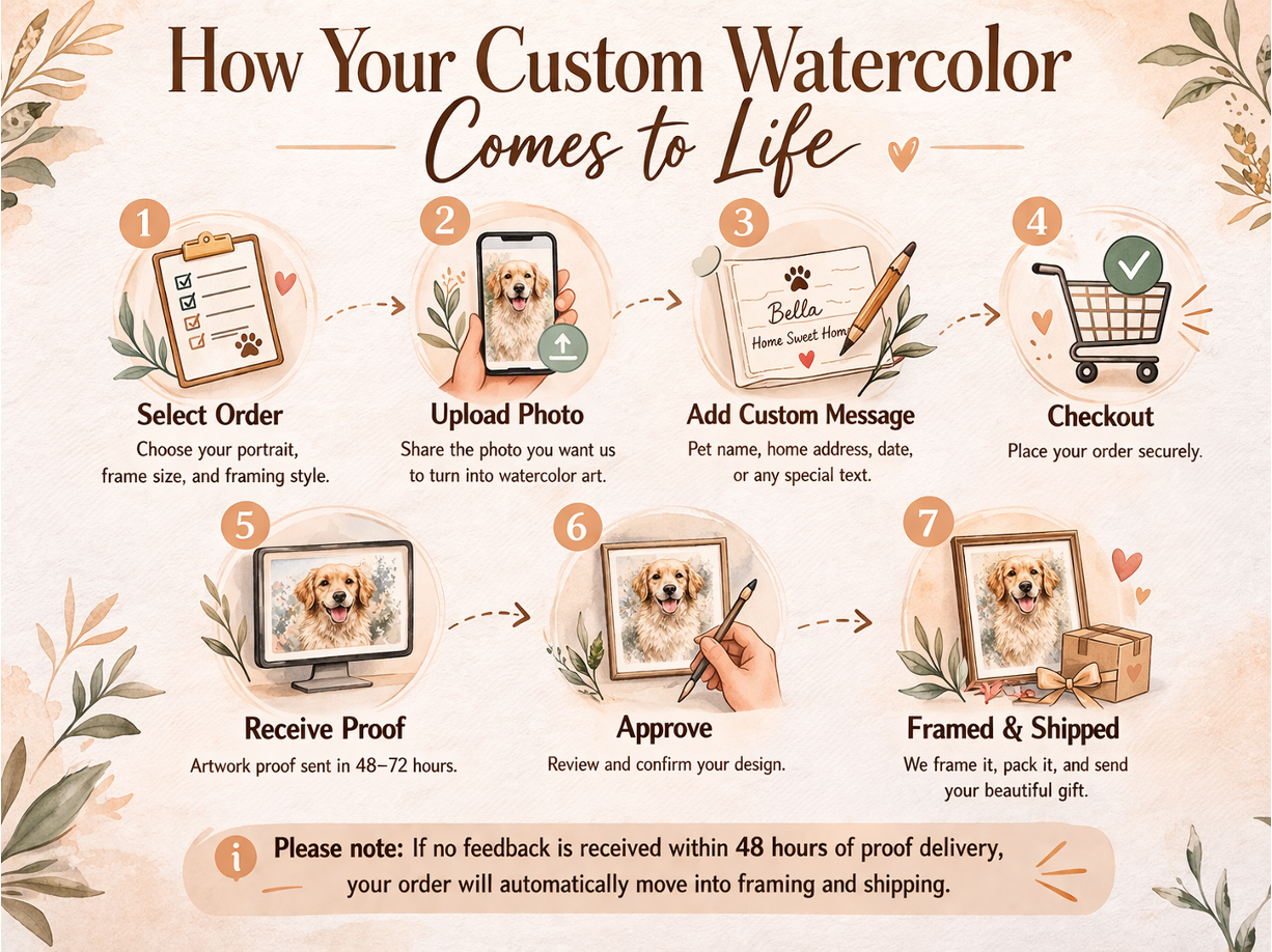 - Allow 48h–72h for the artist to create your portrait from photo.