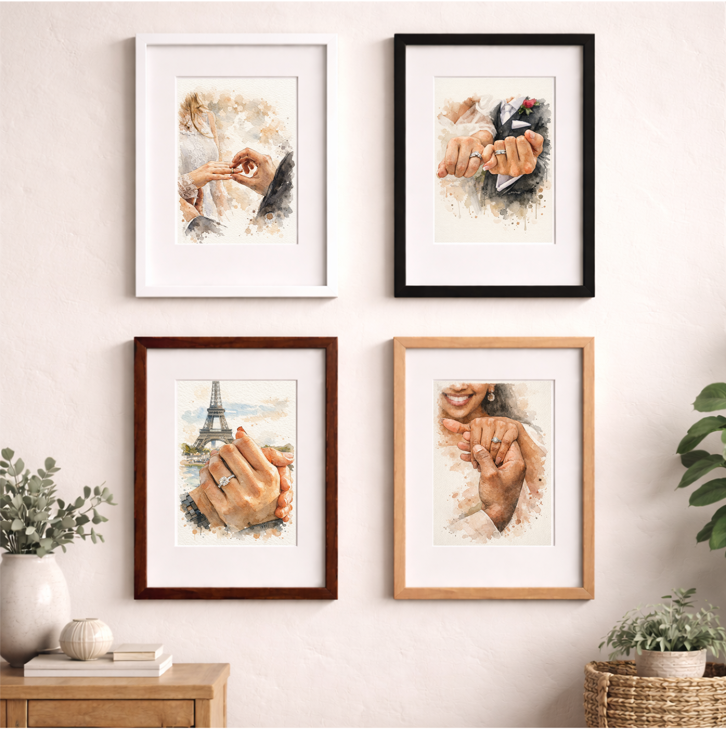 Turn a special engagement photo into a timeless watercolor portrait filled with love, warmth, and meaning. A customized portrait matters because it transforms a beautiful memory into emotional wall art that makes a home feel more personal and connected. It is a romantic gift couples can treasure long after the celebration.