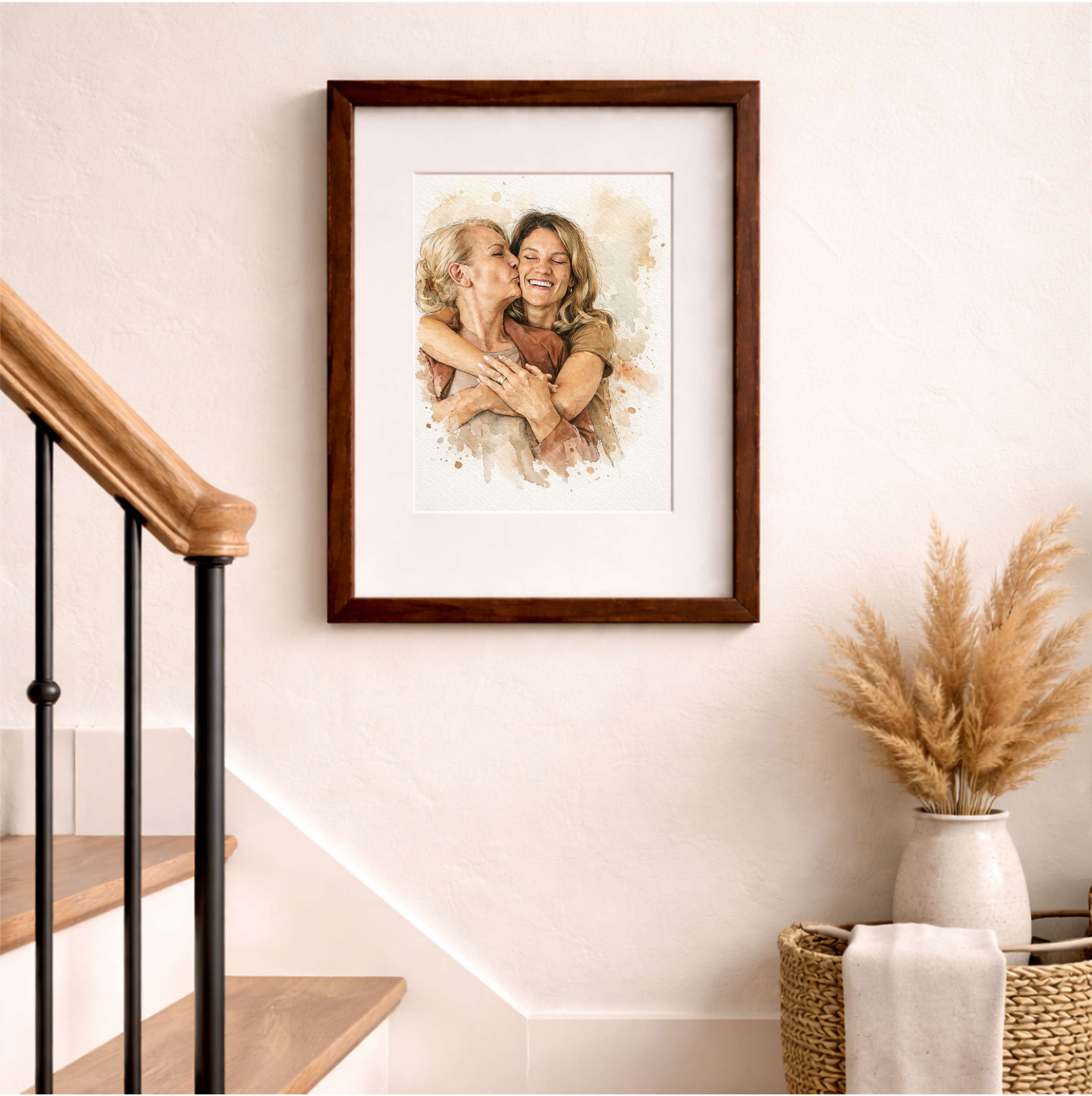• Custom Hand-Painted Watercolor Portrait for Mothers Day Gift 1