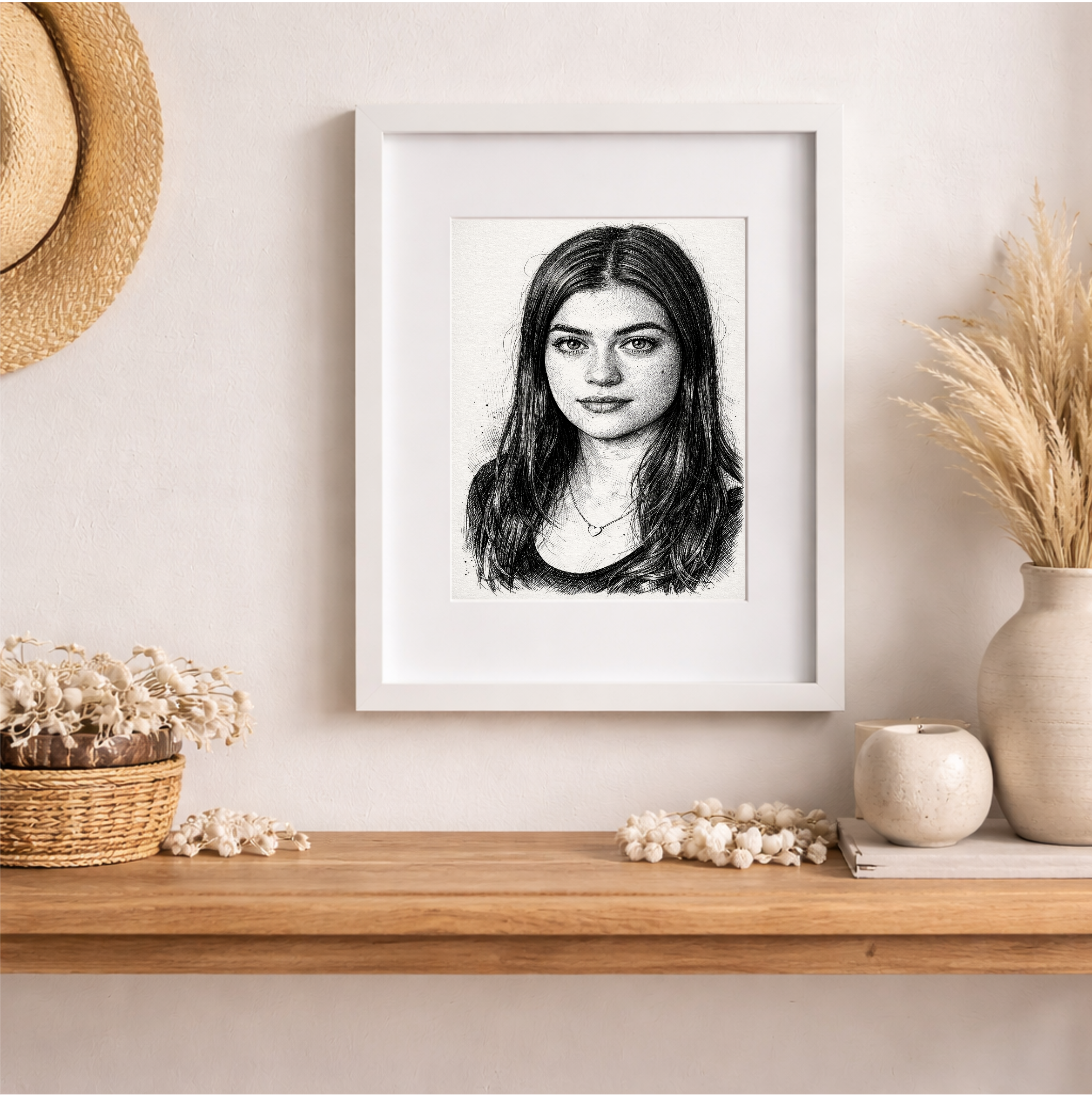 A custom portrait is a heartfelt gift that turns love and memories into timeless artwork. Whether it is a family photo or a special couple moment, this personalized piece adds warmth and emotional meaning to her home wall while making her feel deeply loved. A beautiful keepsake for birthdays, anniversaries, holidays, or everyday gifting.